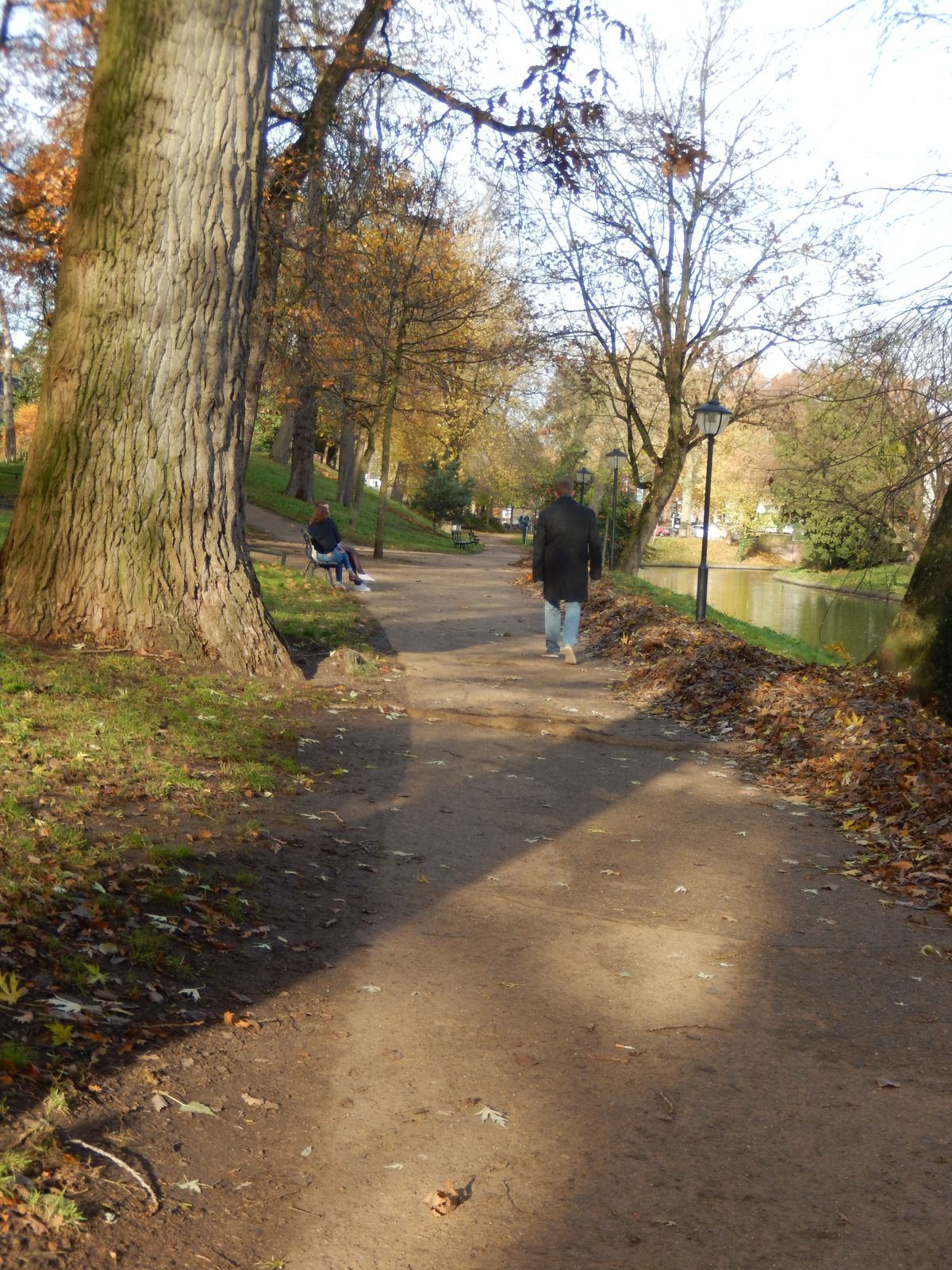 Zocherpark in noordelijke richting met wandelaar op 24 november 2016