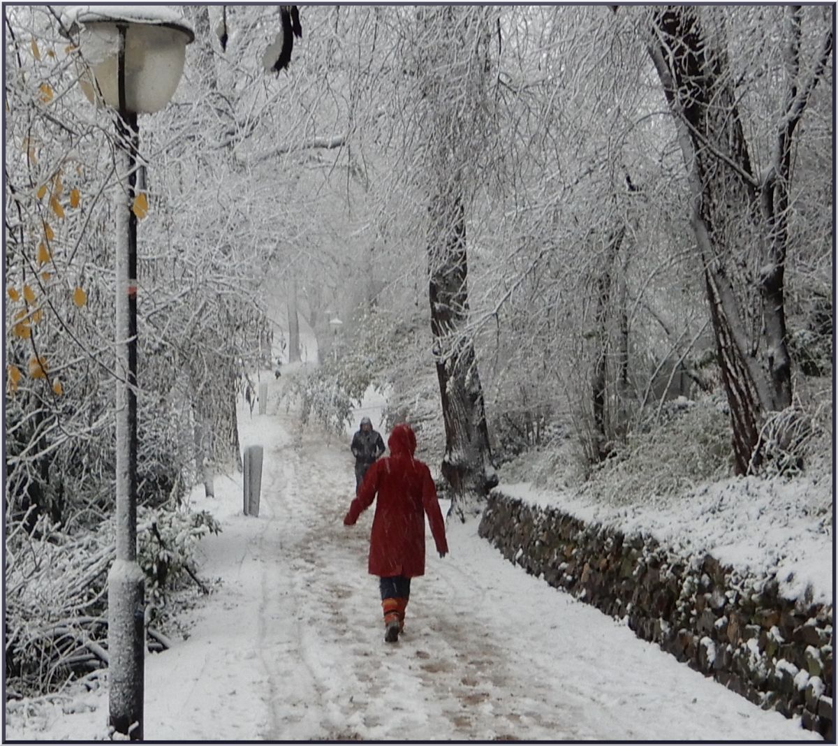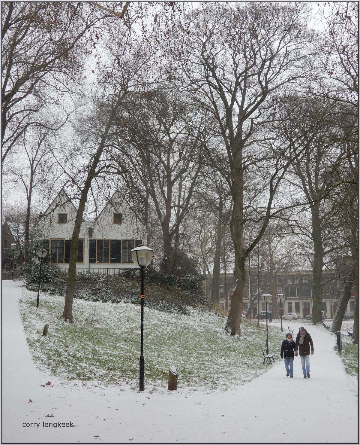 Zocherpark ter hoogte van de sterrenwacht bij lichte sneeuw