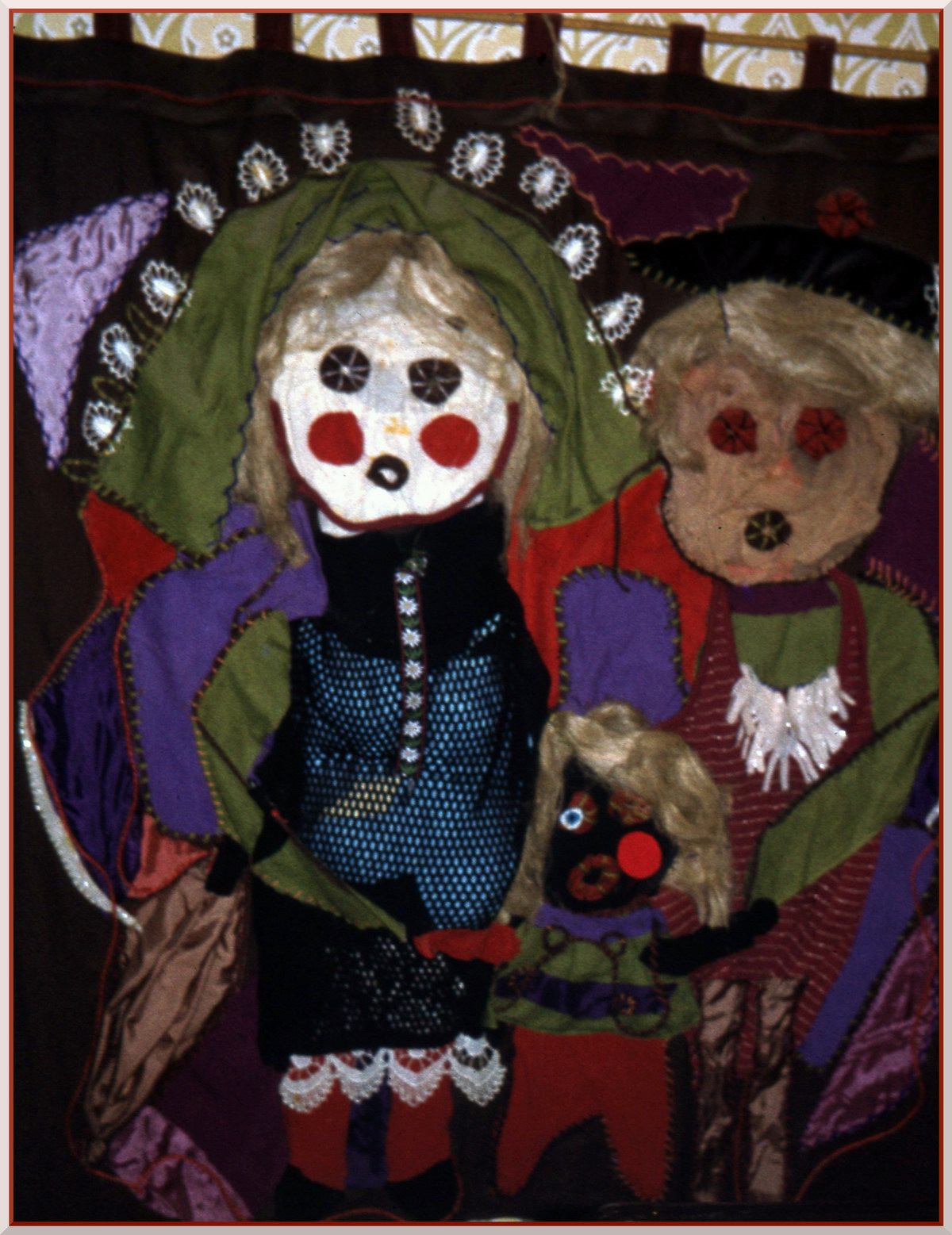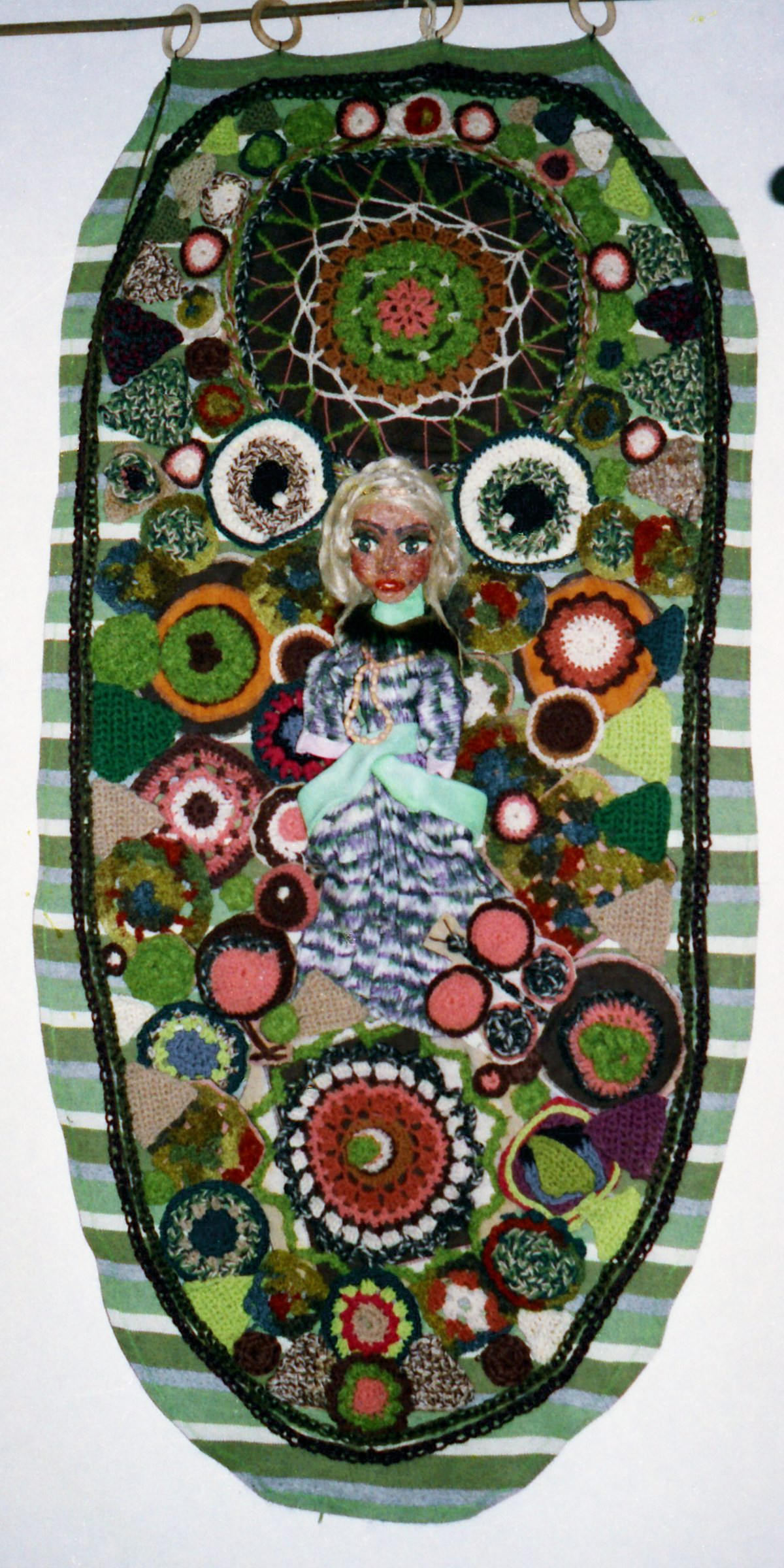 In dit wandkleed is een poppengezicht verwerkt dat ik in die tijd maakte van papier-maché